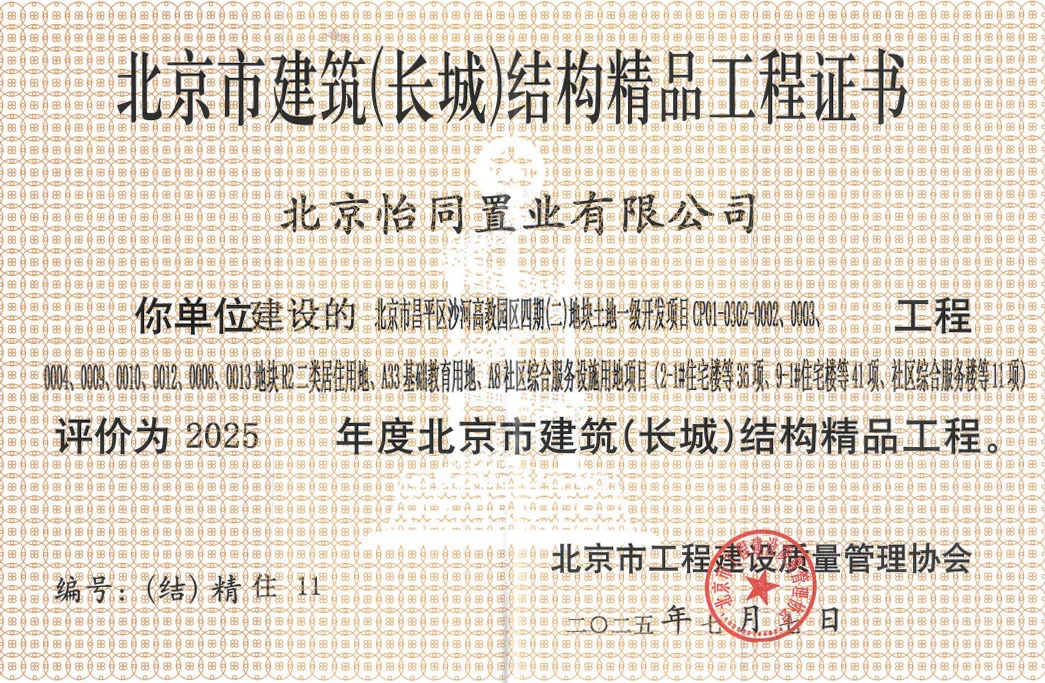 近日,梧桐星宸项目成功斩获“2025 年度北京市建筑(长城)结构精品工程”奖项。该项目自2023年11月开工以来,始终坚持“质量第一”,在保障质量的同时加速推进,今年已实现现房竣备,期房部分进入规划验收阶段。此前,该项目还曾获昌平区建筑协会2024年度重大项目优秀单位、北京市绿色安全文明样板工地等荣誉。