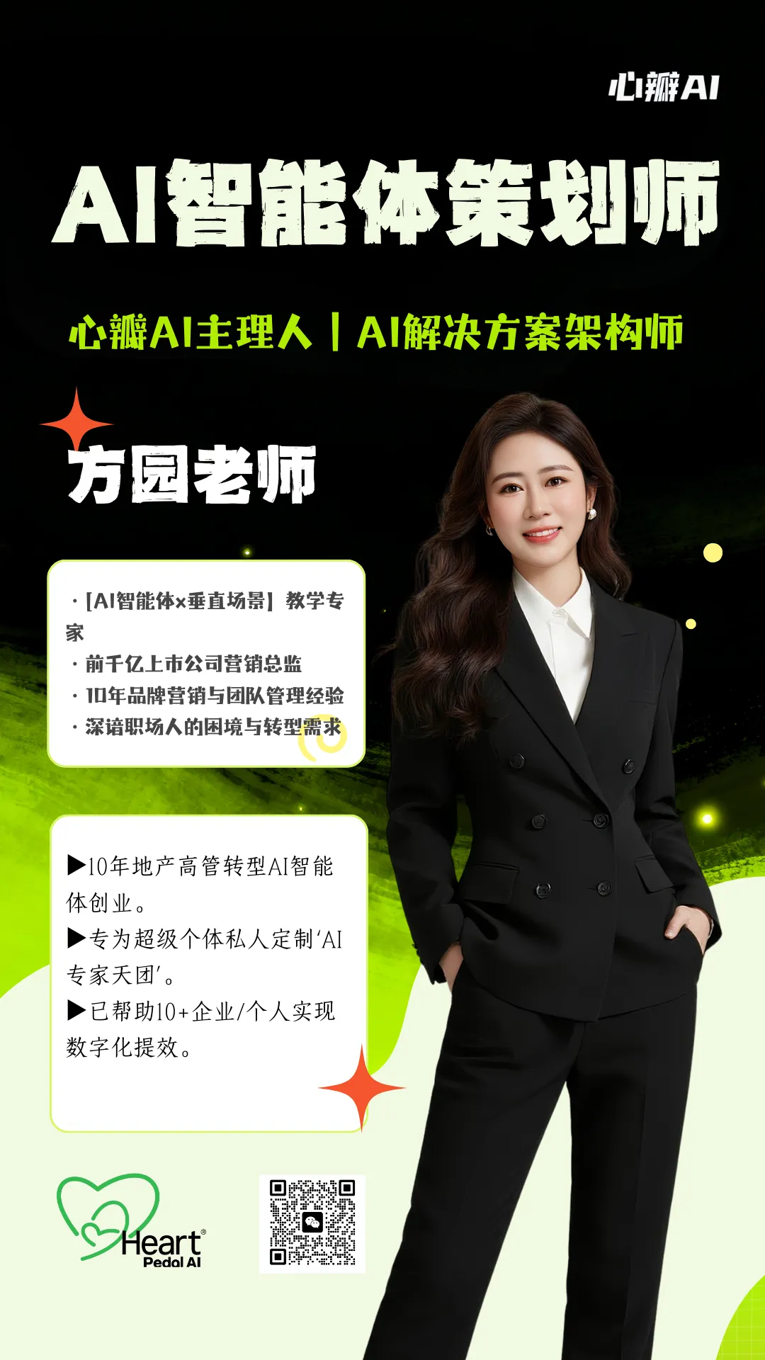 我是方园,33岁那年,我做了一个在别人看来"疯了"的决定:从国企地产公司裸辞,放弃高薪和稳定,转型做AI智能体策划师。