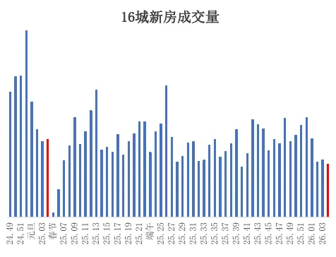 但从我们监测的全国 16 个重点城市新房交易量(周度走势)来看,过去三周(进入 1 月份以来),成交量相比此前多周大幅下滑,且显著低于去年同期。