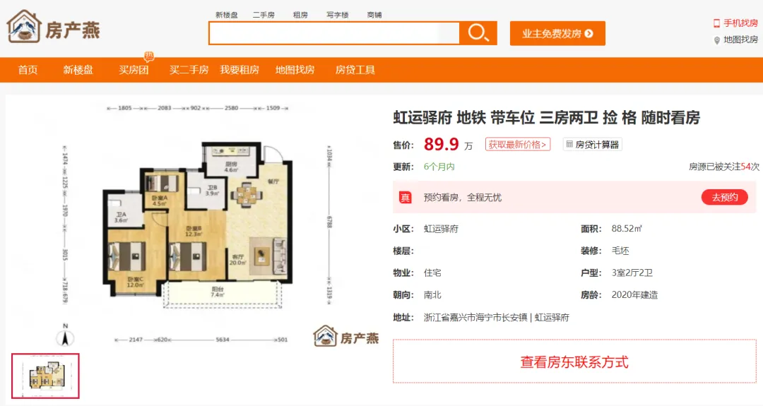 找房子→房产燕丨虹运驿府 89.9万 88.52平米 虹运驿府 地铁 带车位 三房两卫 捡 格 随时看房