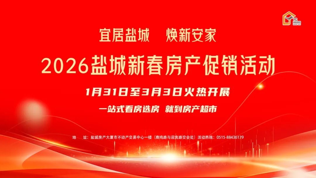 1月31日上午10:00-11:00,盐城房产超市将举办“2026盐城新春房产促销活动启动暨首场政策宣讲会”。活动期间,盐城房企将推出哪些置业优惠,小编带你抢先看!