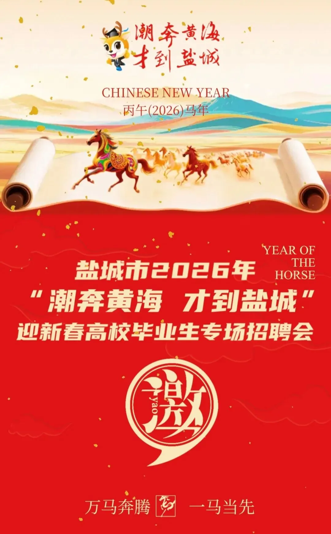 1月31日上午9:00-11:00,盐城市2026年“潮奔黄海、才到盐城”迎新春高校毕业生专场招聘会将在新龙广场4号楼一楼招聘大厅举行,有哪些值得期待的岗位呢?