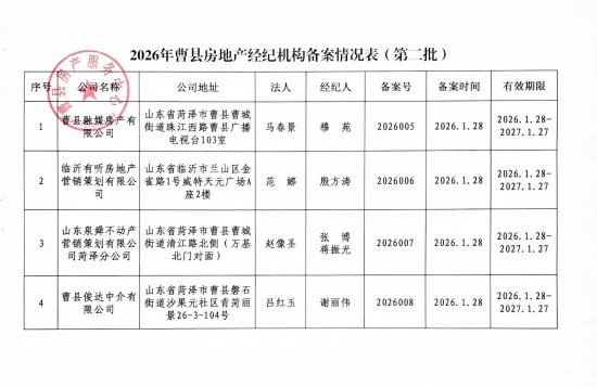 关于2026年曹县房地产经纪机构第二批备案情况的公示!
