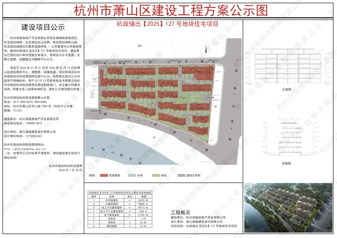杭州市规划和自然资源局网站最新公示:杭州滨颖房地产开发有限公司拟在湘湖旅游度假区东至规划绿地,北至规划定山支路,南至规划杨岐山路西至规划城镇社区服务设施用地 /公共管理与公共服务用地,建设杭政储出【2025】127号地块住宅项目。