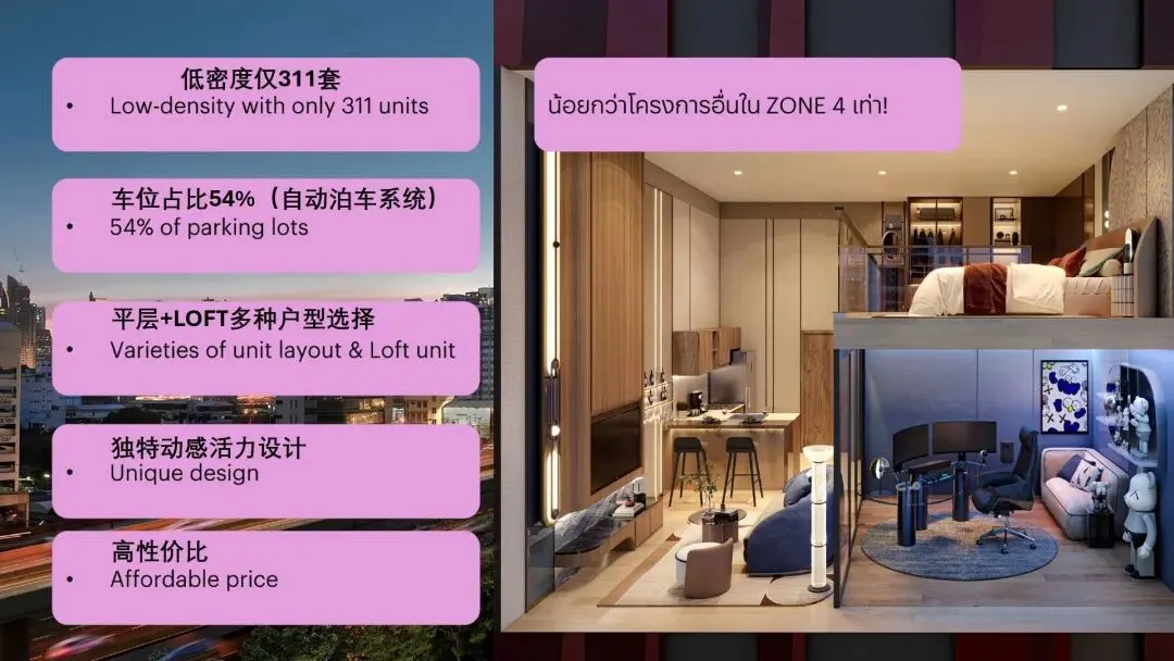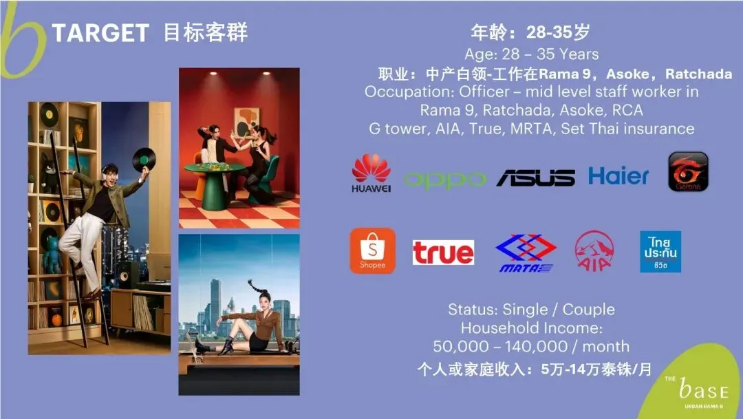 Rama 9区域随着今年来不断地发展,已成为曼谷成熟的热门CBD区域之一,区域内大型企业众多,例如:华为,海尔,OPPO,联合利华,TRUE电信,AIA保险,泰国证券交易所,Shopee等云集于此,大量白领为该项目的出租提供充足保障。 同时,由于中国大使馆坐落于该区域也成为众多华人在泰国落地生活,工作的首选.