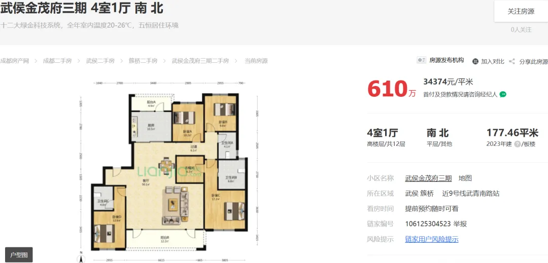 2026年01月09日,【那坊归心】成都武侯簇桥存量房(二手房)武侯金茂府二期建面158平套四报价450万,是否适合90后?