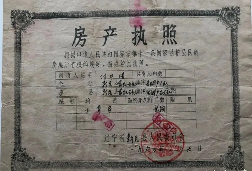 仅在微信公众号发表。其它平台转载请联系作者授权,并务必注明出处。未经许可,任何组织和个人,不得将本文中的信息用于出版、发行等目的! 最近,偶然看到一张新民县老的房产执照照片,对之分析后,又对村的历史研究下,全面如下。如有纰漏,请望谅解。 房产执照照片