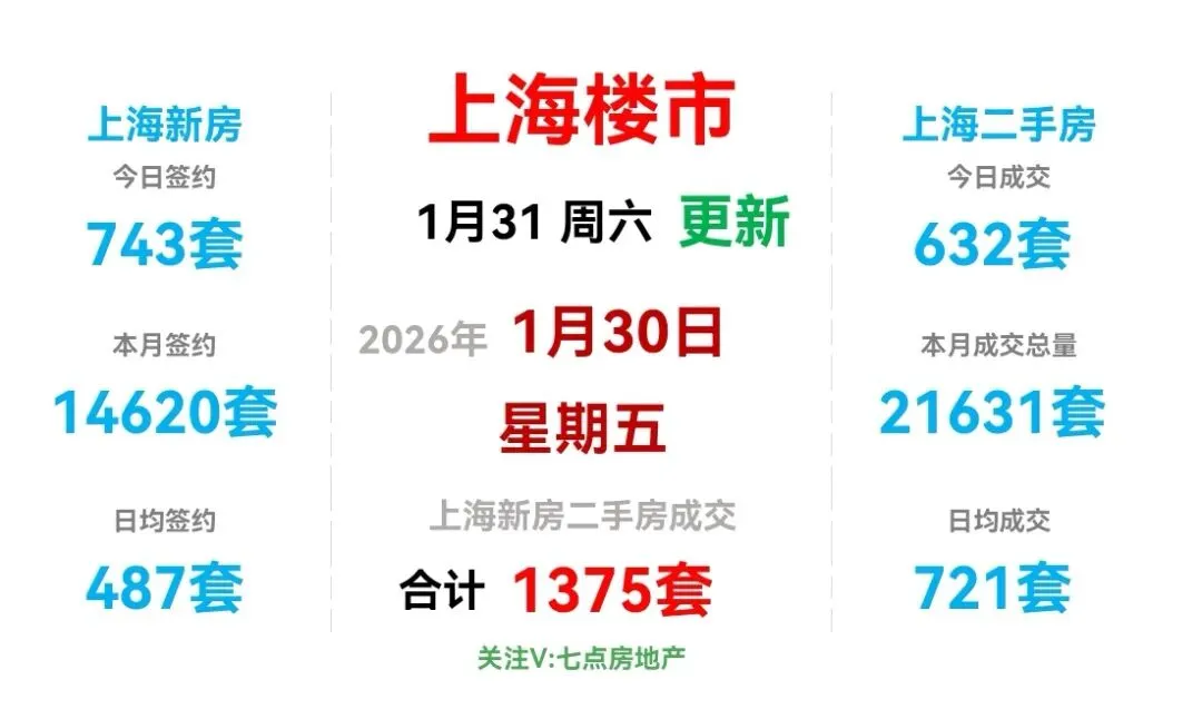 昨日(1月30日,周五),上海新房和上海二手房成交量合计1375套。