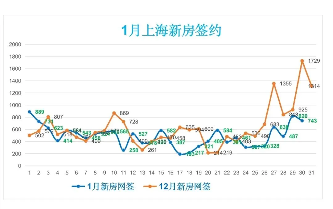 1月25日 周日,上海新房和上海二手房成交量合计1352套