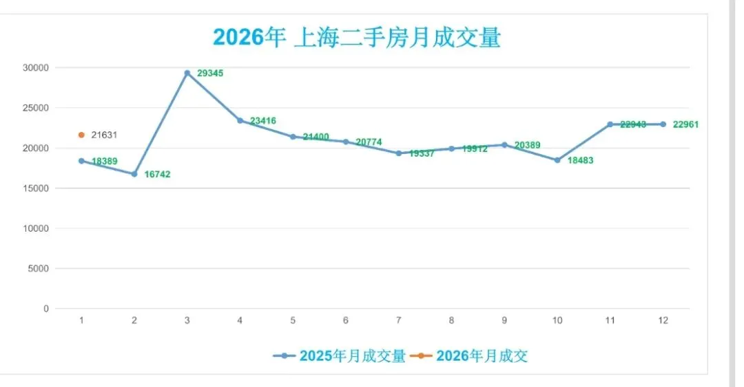 ♻️截止2026年1月30日,2025年上海二手房成交量合计254091套,月均21174套。