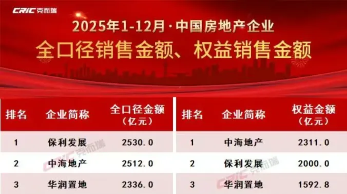 2025年全口径销售额榜单出来后,很多地产人第一反应是: