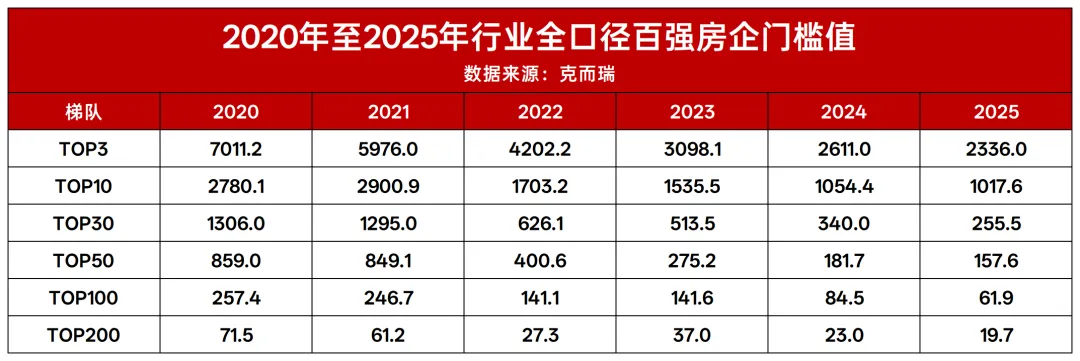 房企规模收缩的同时,各梯队的门槛值也跟着继续下探——