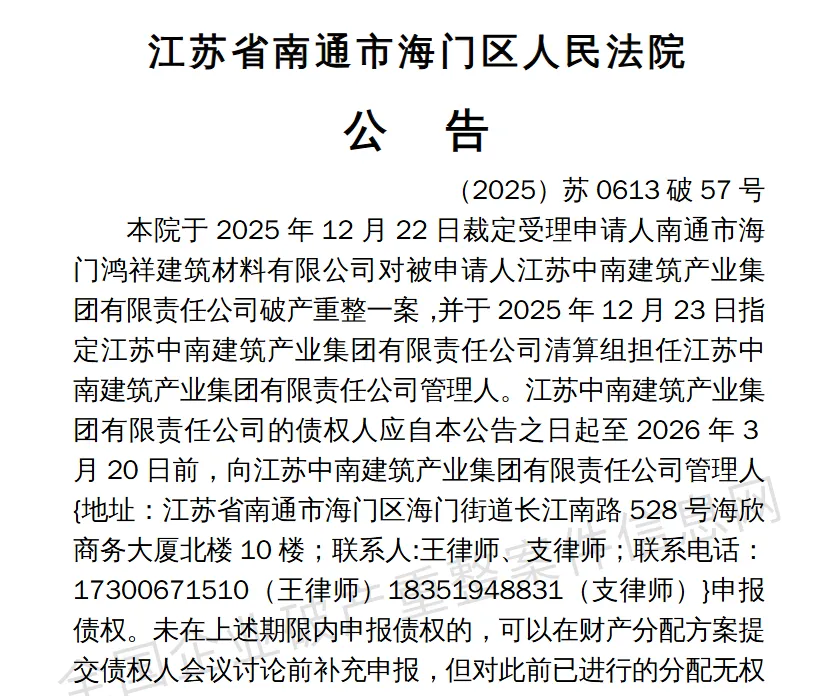 中南建筑注册资本80.008亿元,拥有建筑工程施工总承包特级等核心资质,这是其核心重整价值。此次重整源于母公司中南建设2024年A股退市,融资渠道切断无法纾困,叠加自身高负债扩张、房地产下行致回款难,现金流枯竭无力清偿债务,此前纾困基金也未扭转颓势。后续管理人将开展资产调查、债权审核等工作,重整需平衡多方债权人利益,明确业务方向,盘活存量资源以恢复企业经营能力。(来源:全国企业破产重整案件信息网)