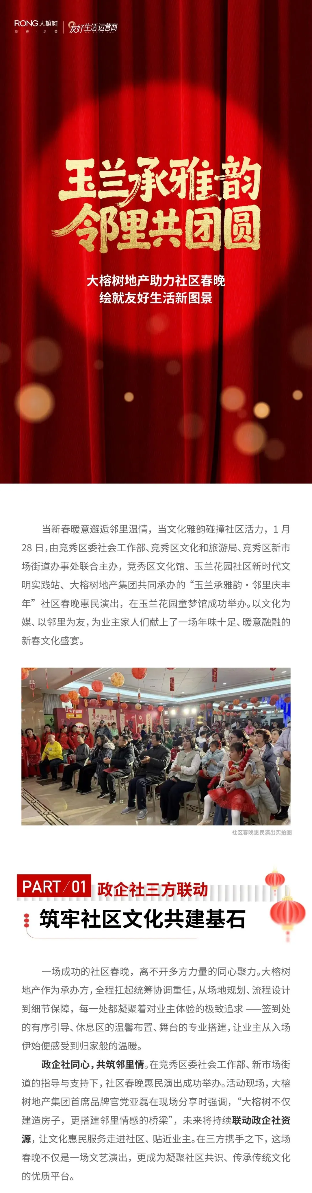 玉兰承雅韵,邻里共团圆!大榕树地产助力社区春晚,绘就友好生活新图景