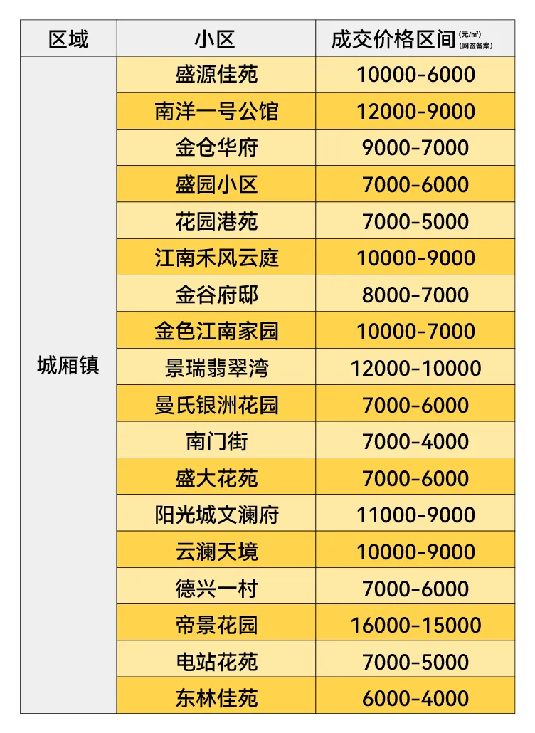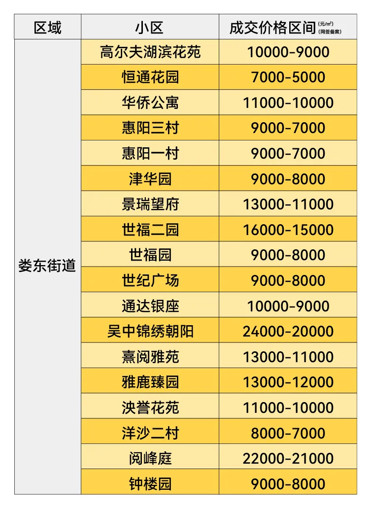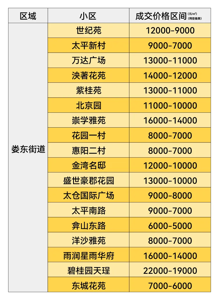 2026年1月太仓各板块二手房成交均价(不含别墅)