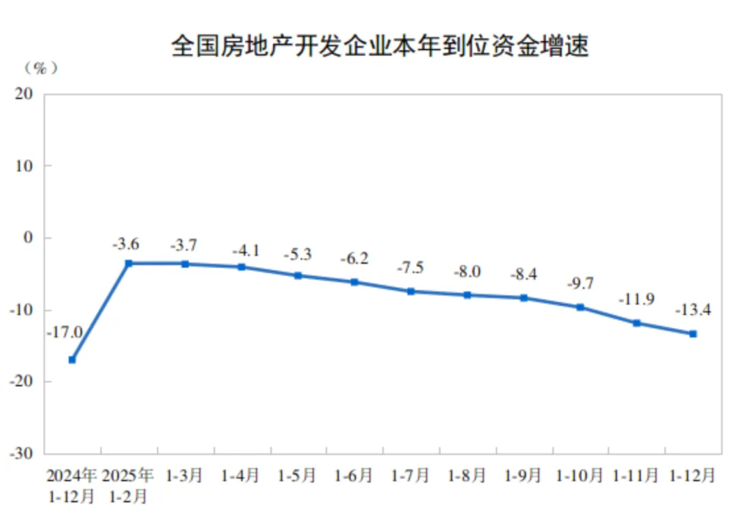 - 自筹资金、定金及预收款下降12–16%,个人按揭贷款下降17.8%,显示购房需求收缩,房企现金流承压。