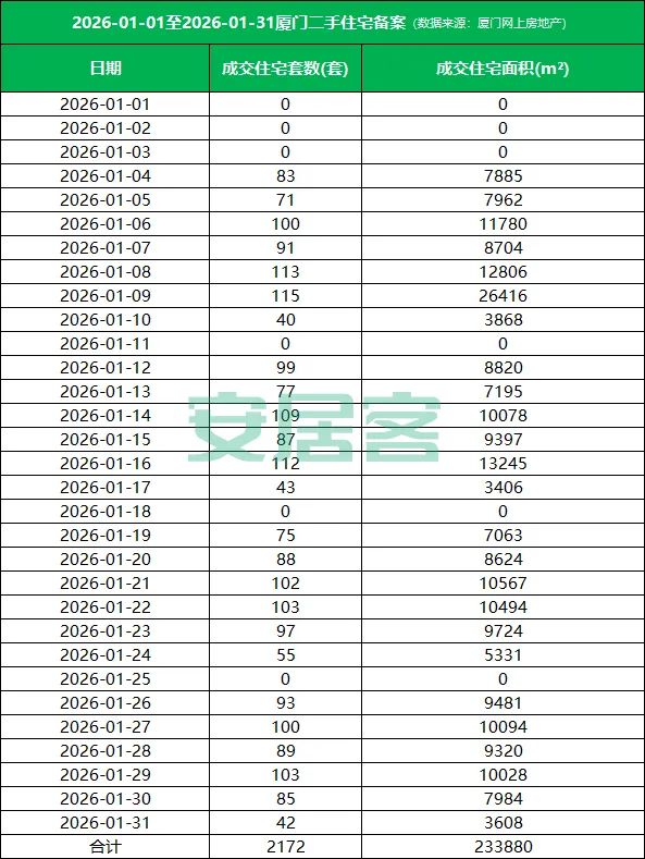 1月厦门二手房备案数据再破2000套,成交飙至近一年峰值。