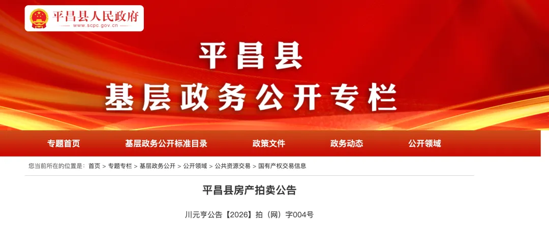 平昌县房产拍卖公告