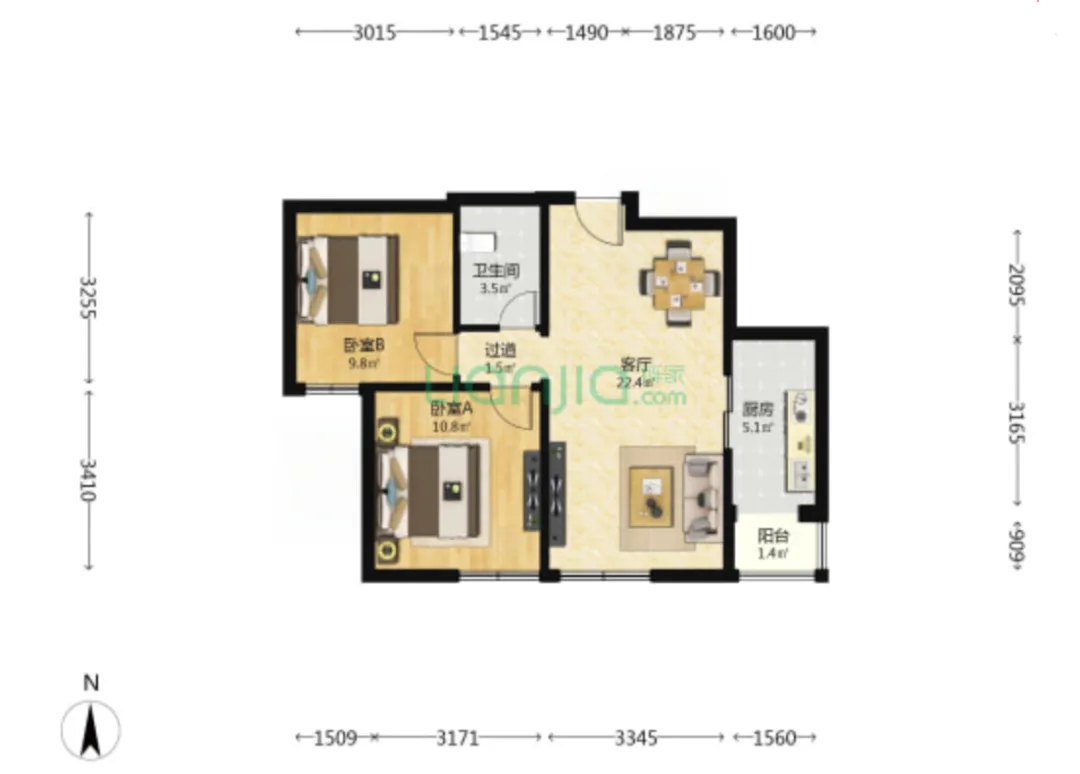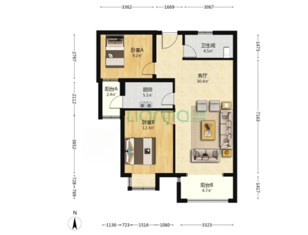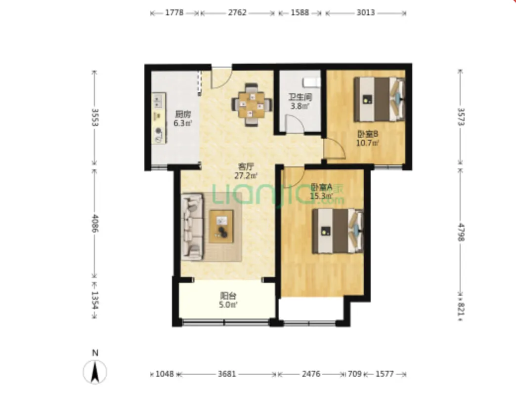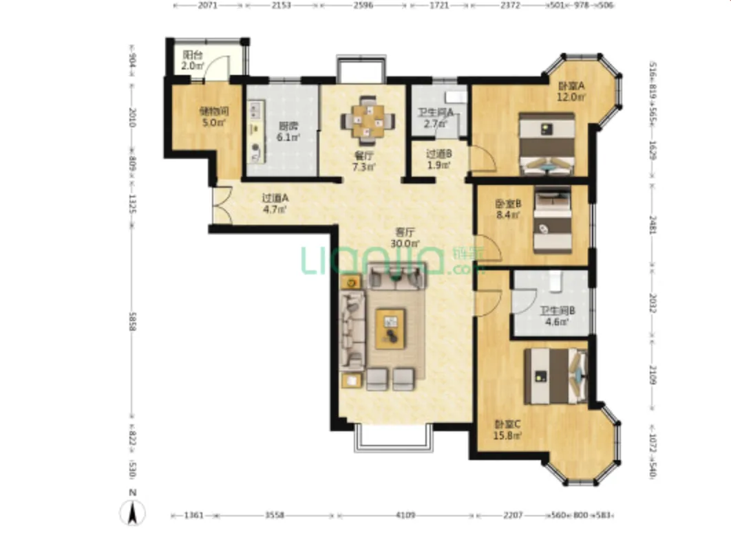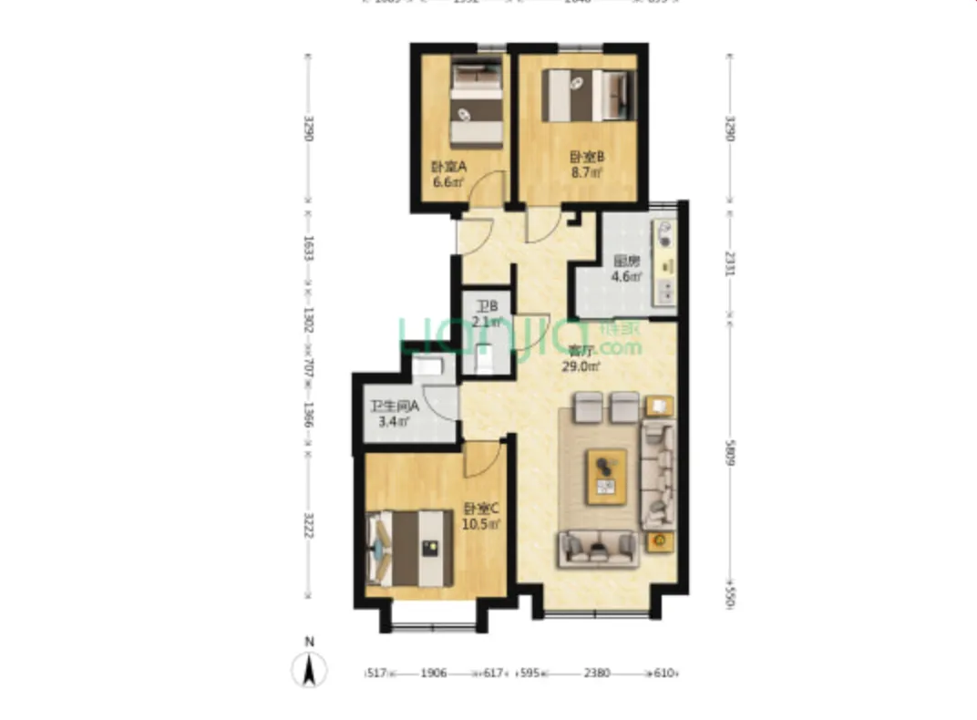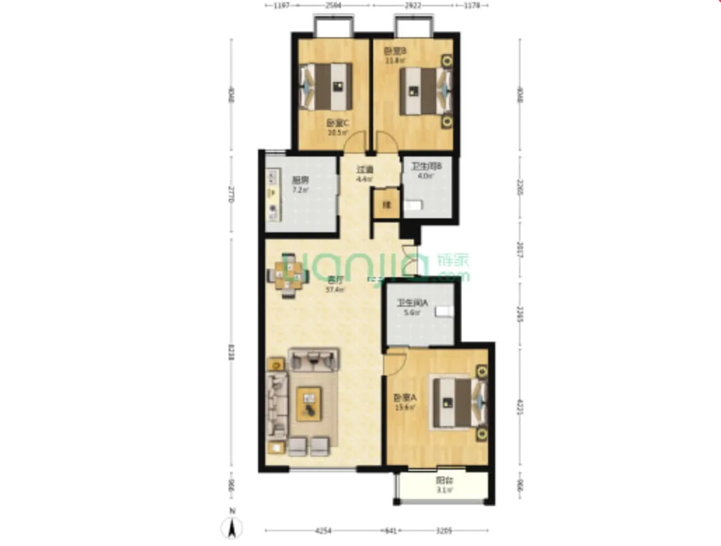 99平米南北三居室,26年1月初中楼层成交价527万;