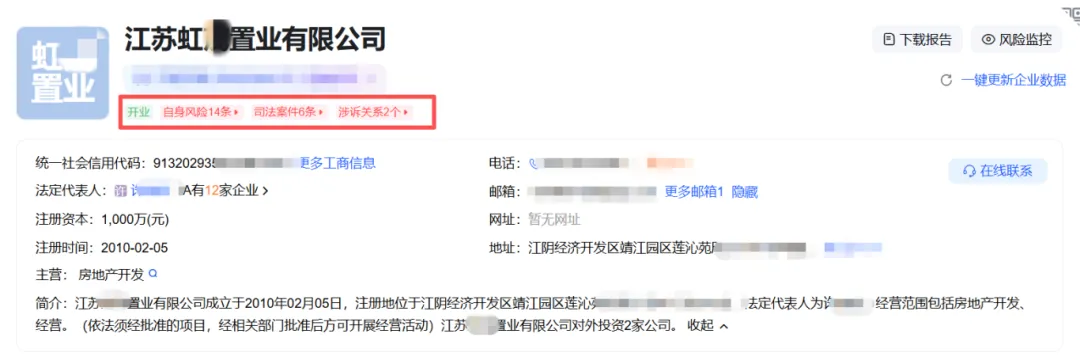 据公开信息显示,此次拍卖房产均在江苏虹*置业有限公司名下,该公司成立于2010年,注册地位于江阴经济开发区靖江园区,主要从事房地产开发。开发商名下商铺为何会被法院查封拍卖呢?