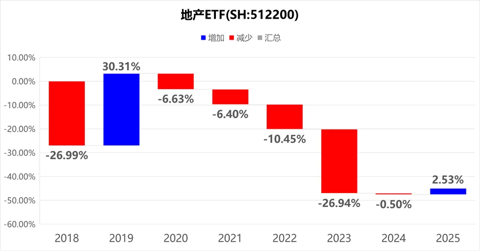 有多年行业统计数据来对比,A股最大的中证全指房地产ETF(2017年8月成立,几乎连跌了6年,从20年开始整体跌了40%以上)。
