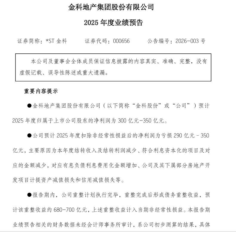 金科地产(ST金科 000656.SZ)更有意思,今年生意不好,预计亏损了290亿到350亿,不过不打紧,公司账面还是盈利了300亿到350亿,因为有一笔重整收入预计达到680亿到700亿。