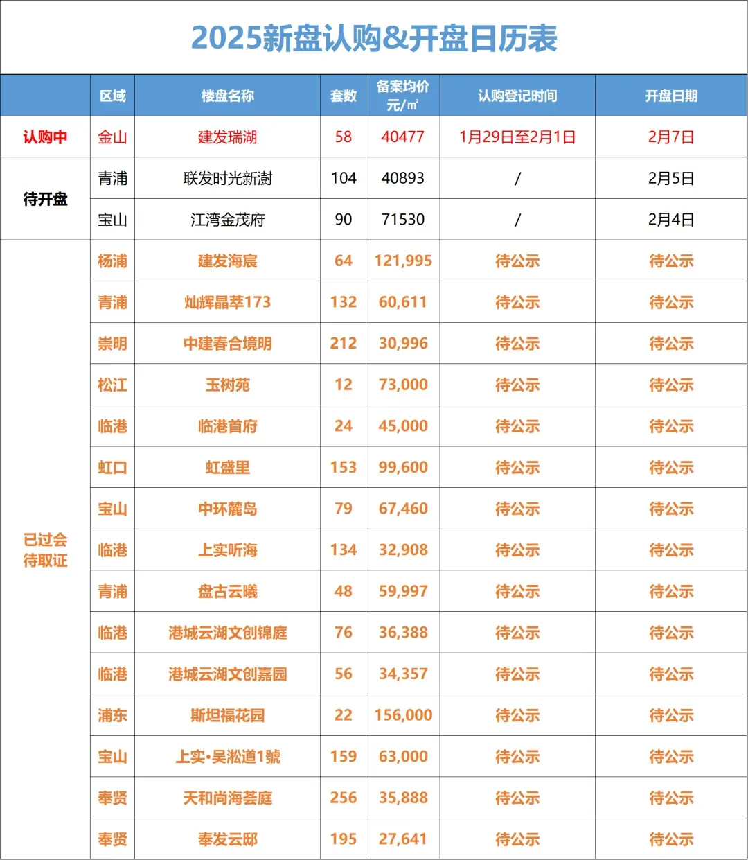 上海新房认购&开盘日历