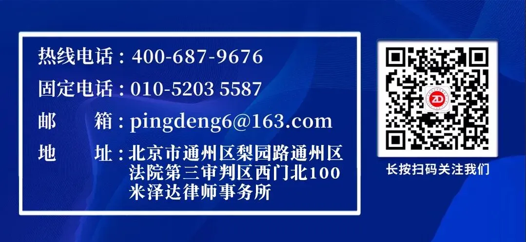 北京泽达律师事务所律师对不同法律规定、热点、案件、裁判文书的梳理和研究,旨在为更多读者提供不同的研究角度和观察的视角。但需注意,我国并非判例法国家,且司法实践中不同案例的细节千差万别,切不可盲目参照。