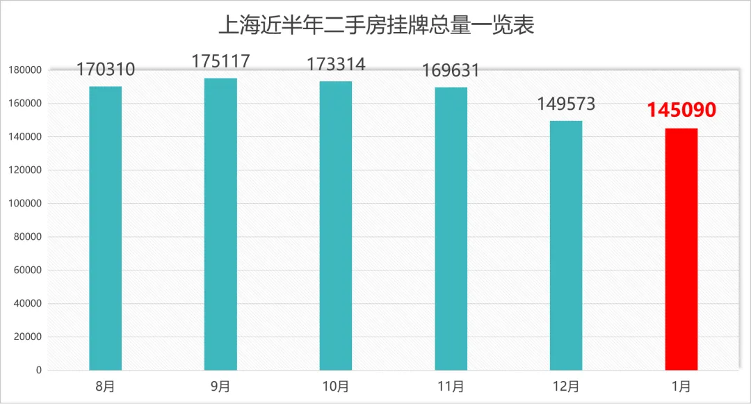 截至2025.2.1,兔博士数据显示上海二手房挂牌总量约14.51万套,进入1月份后,上海二手房挂牌量首次跌破15万套。