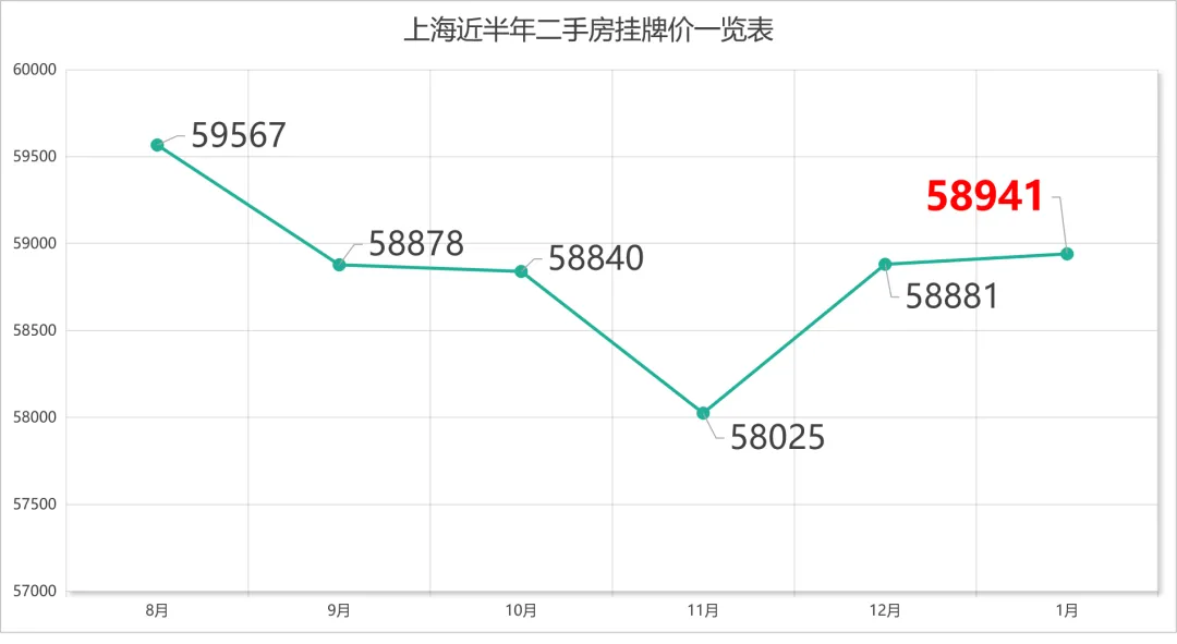 截至2025.2.1,兔博士数据显示上海二手房挂牌均价约58941元/㎡。