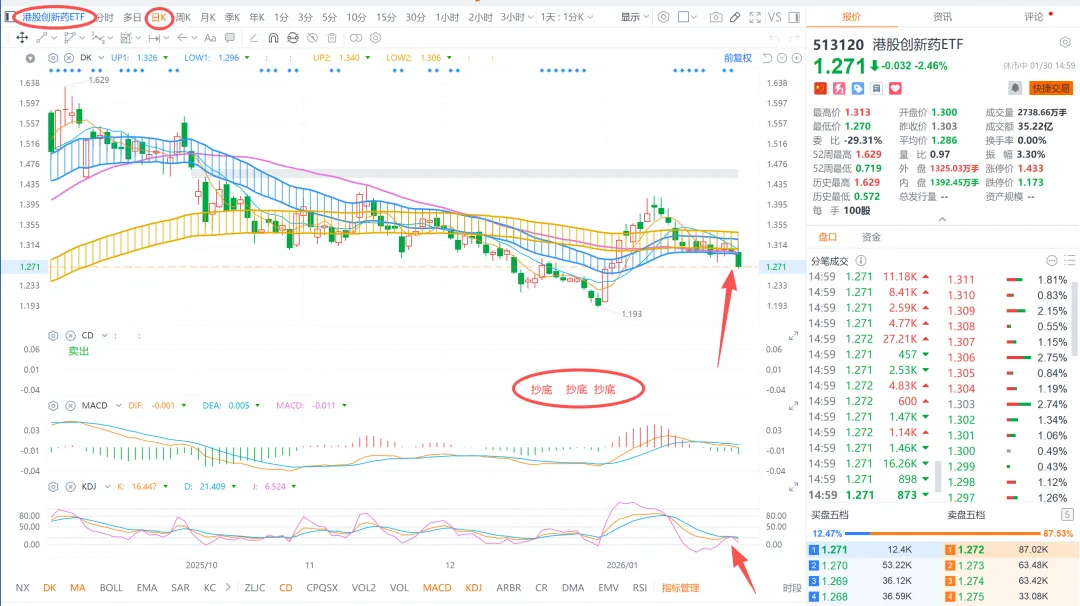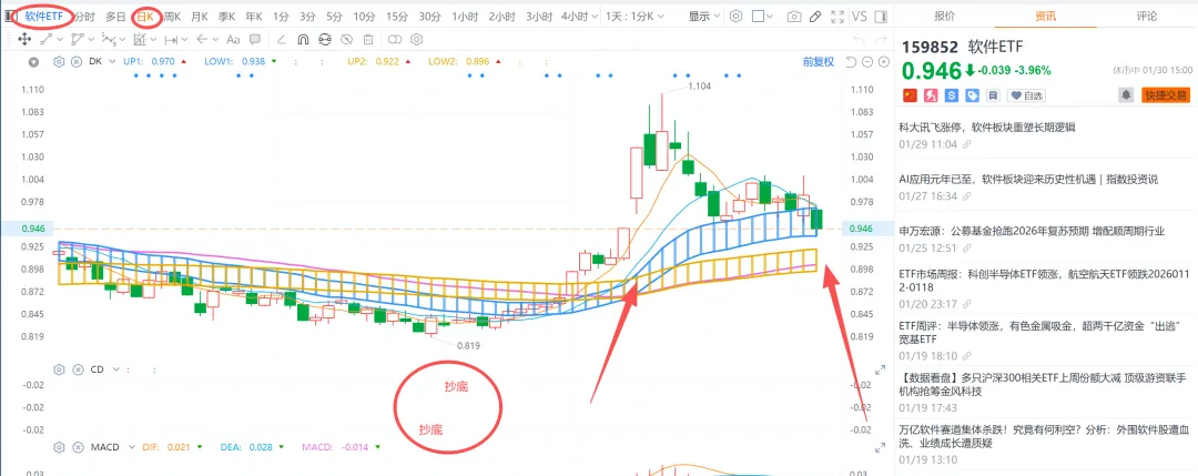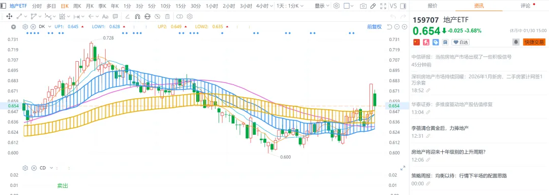 每天分享一些港美A股的走势分析图,根据指标做一些参考思路和建议。大A 1小时线我说了快半个月,一直说等待蓝梯子回踩黄梯子,目前来看梯子夹角也越来越小了,大概年前一两周左右的时间,毕竟大家都在等待春节股市红包呢。近期动力煤市场价格止跌回升。寒潮影响下全国大部气温下降,南方局部出现降雪,电厂负荷随之提升,日耗处于同期高位。煤炭ETF日线有抄底,第一个箭头是蓝梯子突破黄梯子可以建仓,第二个箭头是蓝梯子回踩黄梯子反弹加仓!中新经纬研究院与国家广告研究院联合发布的2025中国品牌出海系列报告第9期《医药出海新图景》显示,出海成为创新药企业的第二增长曲线。中国生物医药行业正由“重研发”逐步迈向“强商业化”,盈利能力进入兑现期。创新药ETF日线有抄底,等待蓝梯子突破黄梯子才能建仓!机器人ETF日线出抄底,第一个箭头是蓝梯子突破黄梯子建仓,第二和第三个箭头是蓝梯子回踩黄梯子反弹出夹角加仓,目前等待蓝梯子回踩再考虑加仓,已经上车就拿着不动,今年人形机器人是AI医用的热门主线!2026年初,随着AI技术从基础设施层向应用层加速渗透,软件行业正成为资本市场关注的焦点。从大模型持续迭代到垂类应用落地,从春季行情规律到长期成长逻辑,软件板块在多重因素共振下,正展现出前所未有的配置价值。软件ETF出了日线抄底信号,蓝梯子突破黄梯子可以建仓,下面等蓝梯子回踩黄梯子反弹可以进行加仓。看这几天会不会回踩一些,只要不破前低0.819就可以大胆上!消费ETF走势图不太好看,除了周四一波白酒暴涨,但是下降趋势还在继续。地产ETF最近有政策扶持,稍有起色。但是狼来的的故事听多了,我有点免疫,大家注意仓位,少赚点没关系,大亏就难受!深圳房地产市场持续回暖:2026年1月新房、二手房累计网签1万余套。1月31日,深圳今年首个安居房项目——深铁铭著安居房正式选房,181套房源于当日全部售罄实现“日光”。今年以来,不仅安居型商品房受追捧,商品住宅、公寓等成交同样表现亮眼,深圳房地产市场延续2025年底回暖态势。2026年1月全市新房、二手房累计网签1万余套。其中,二手房网签套数同比增加25%,环比增加7%,连续三周上涨。梯子只是趋势其中一个重要指标,如果结合MACD和KDJ,MA,BOLL一起来分析,你的决策会更从容。想了解更多资讯,欢迎加入我的小圈子或者评论区留言。注:以上投资只是个人分享。股市有风险,投资需谨慎。