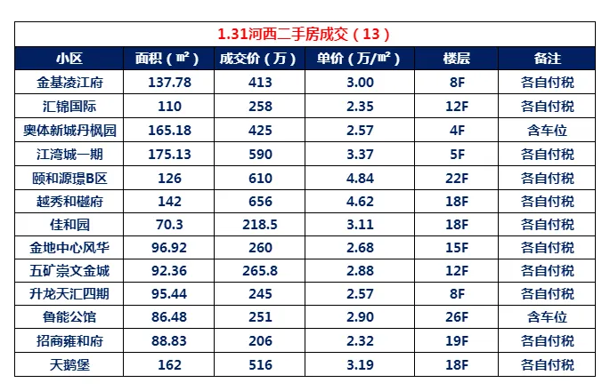 >1月31日河西二手房成交,泾渭分明