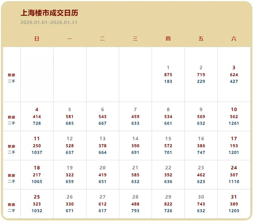 据网上房地产数据显示,今年1月上海新房成交14988套,二手房成交22834套!