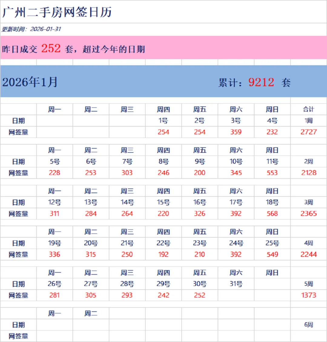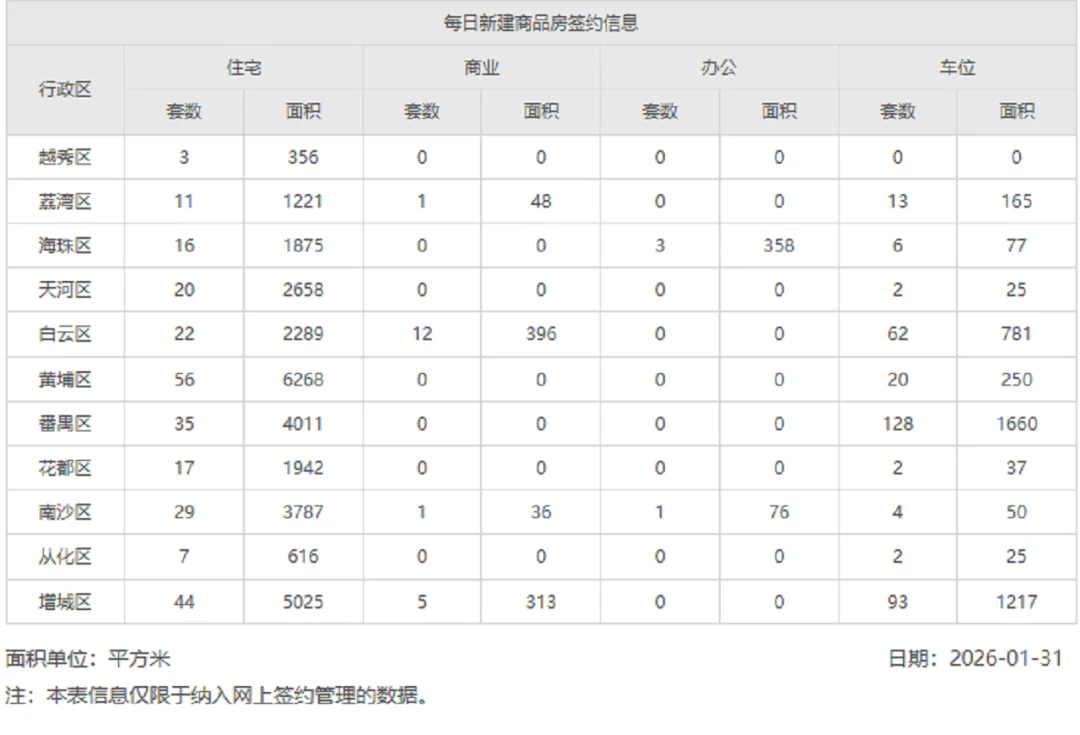 2026年1月31日新房网签数据