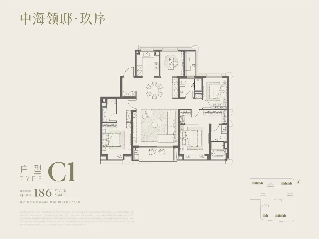 中海领邸:186平最后一套保留房,开盘均价14.3万户型图如下: