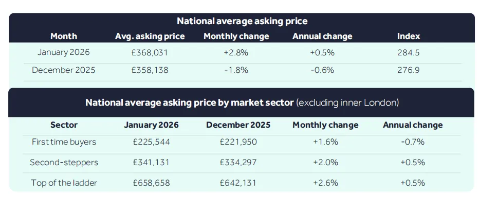 英国房地产网站Rightmove: 1月份待售房均价升至368031英镑,较去年12月上涨2.8%,有记录以来一月份房价最大涨幅,自2015年6月单月最高涨幅