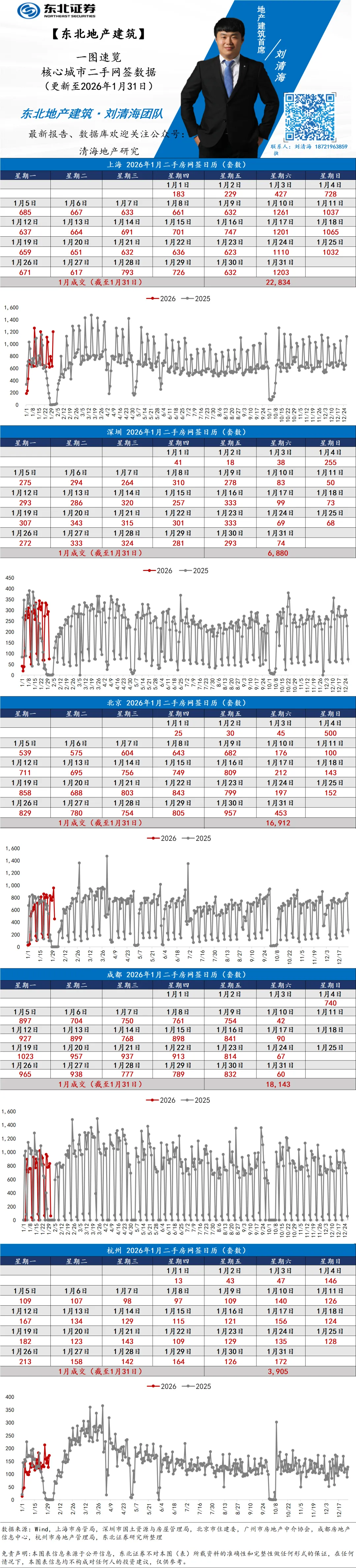 【一图速览】核心城市二手房网签日历(20260131)丨东北地产建筑刘清海团队