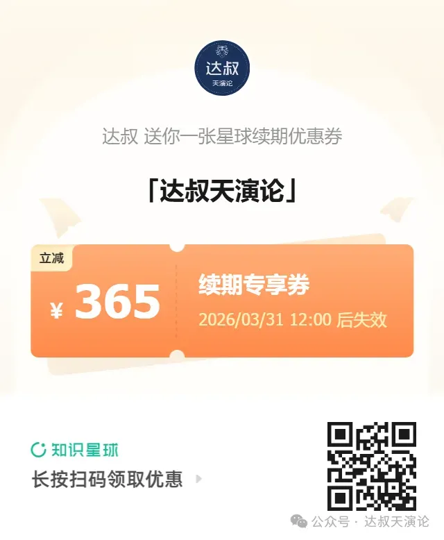 用微信扫码领券续费,达叔付费社群,可以优惠365元。