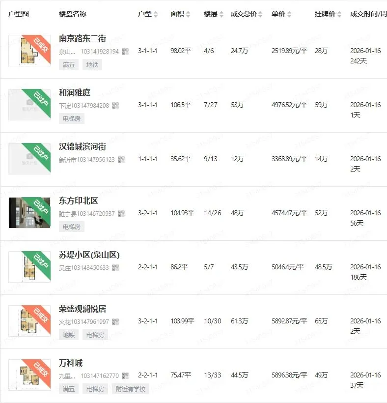 1.小编每日开始更新丨全徐州二手房真实的成交价。