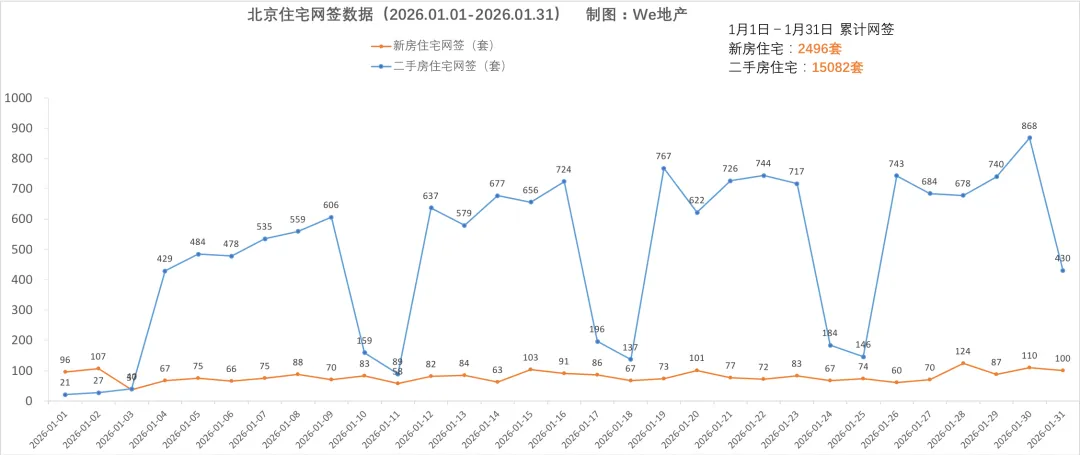 经「We地产」统计,北京2026年1月新房和二手房网签数据正式出炉。