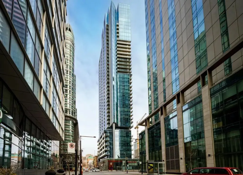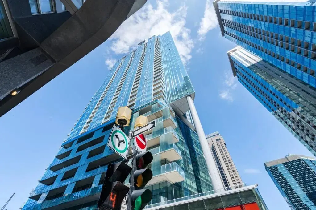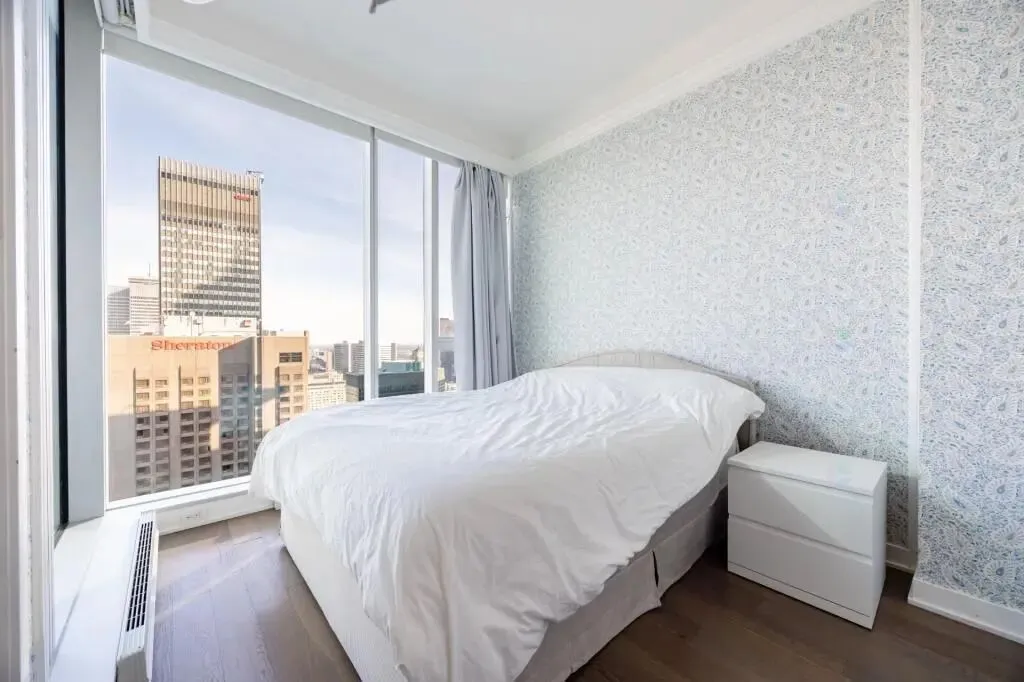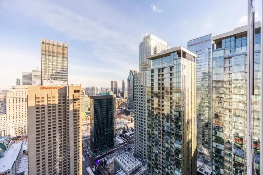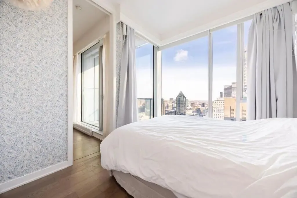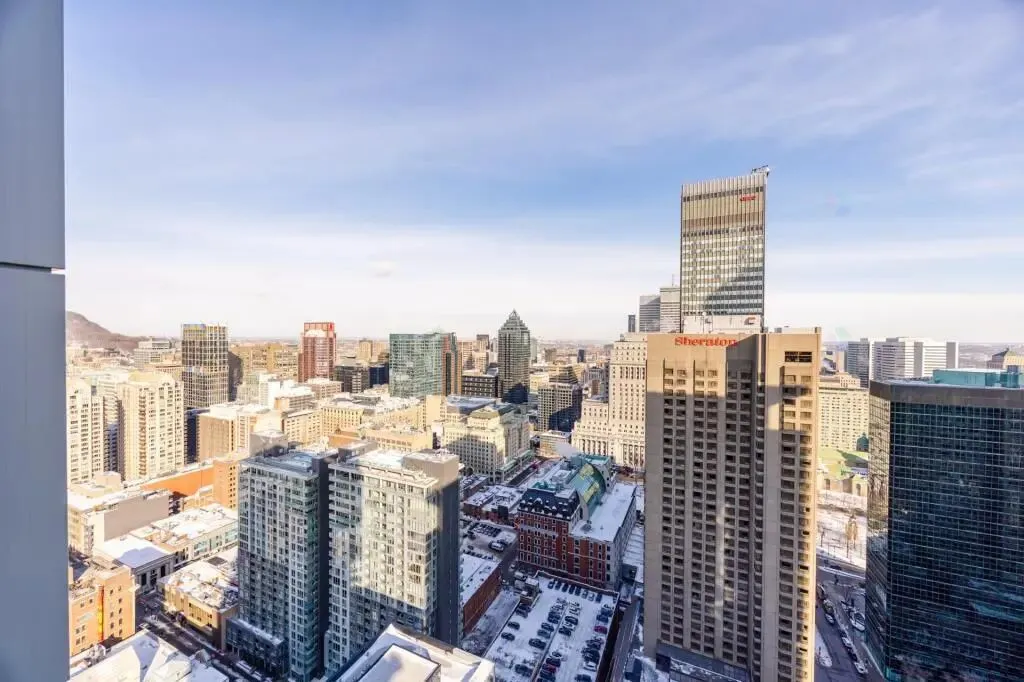 📍坐落于蒙特利尔市中心黄金地段 Golden Square Mile,高端公寓 35层高层单位,真正的高空视野,🌇城市天际线一览无余,白天通透,夜景迷人。