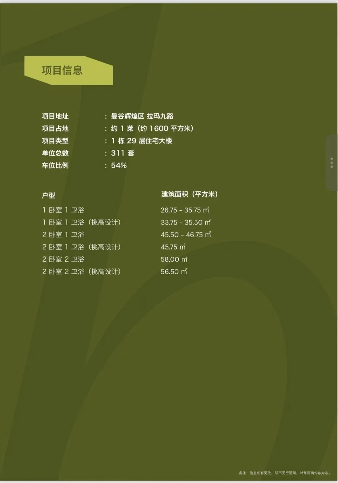维修基金:600泰铢/每平米