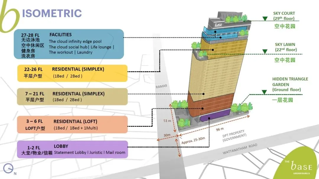 The Base Urban Rama 9项目由泰国顶级开发商Sansiri倾力打造的位于曼谷热点区Rama 9全新低密度现房公寓,项目动感活力的设计加之LOFT与平层两种户型风格,将会极大满足该区大量的租赁需求。