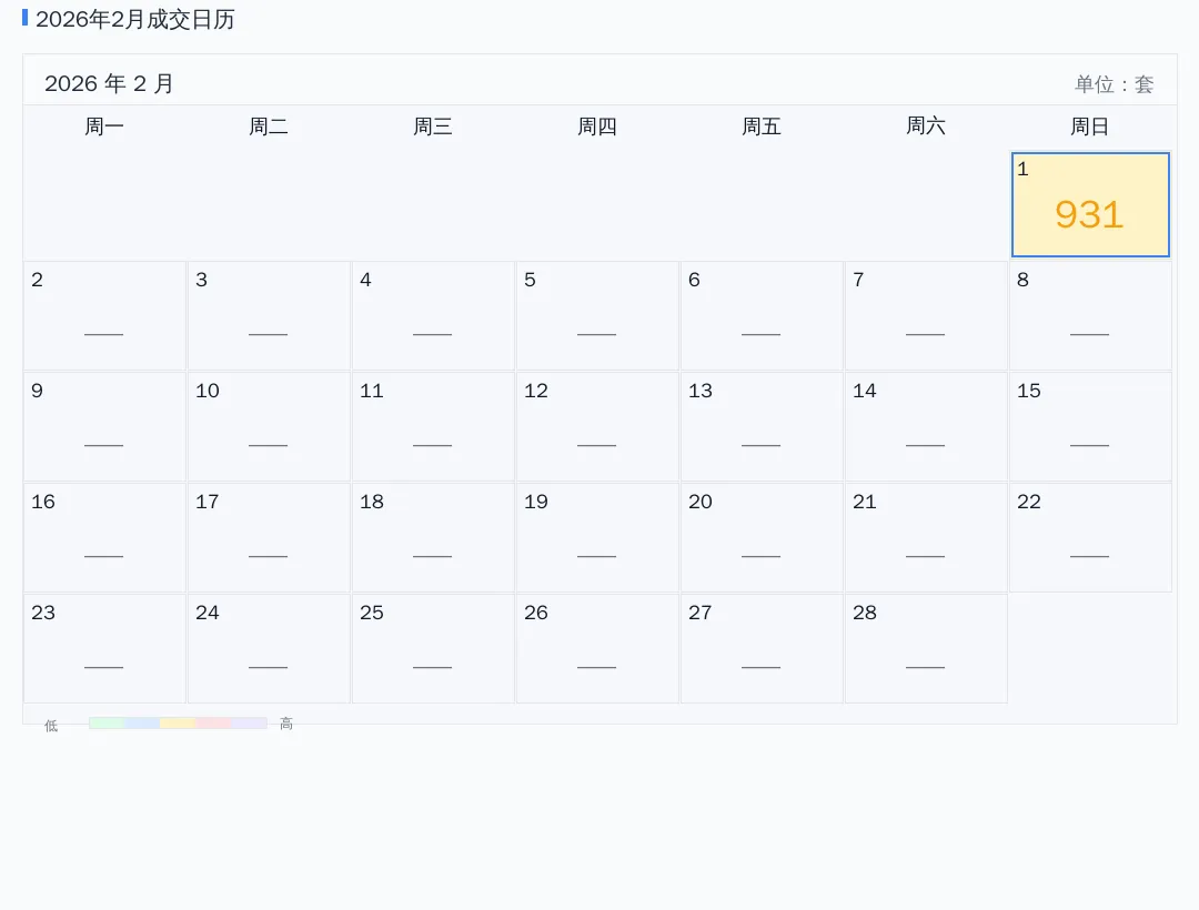2026年02月成交日历