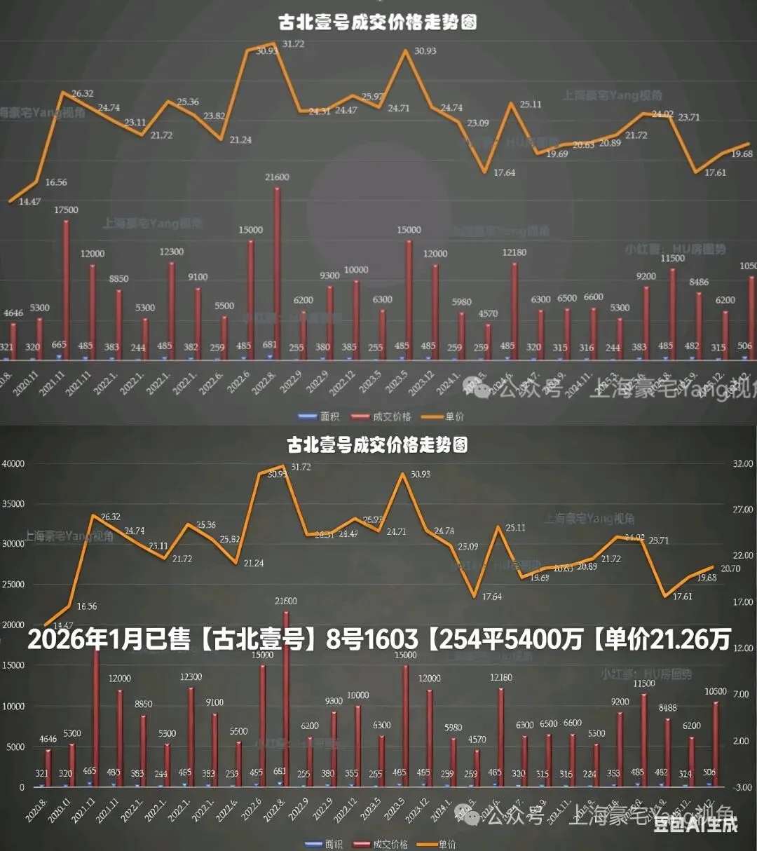 - 价格定位:这一单价处于古北壹号近年成交单价的中间区间,高于2024年底的17.61万/㎡低点,也低于2022年31.72万/㎡的历史峰值。