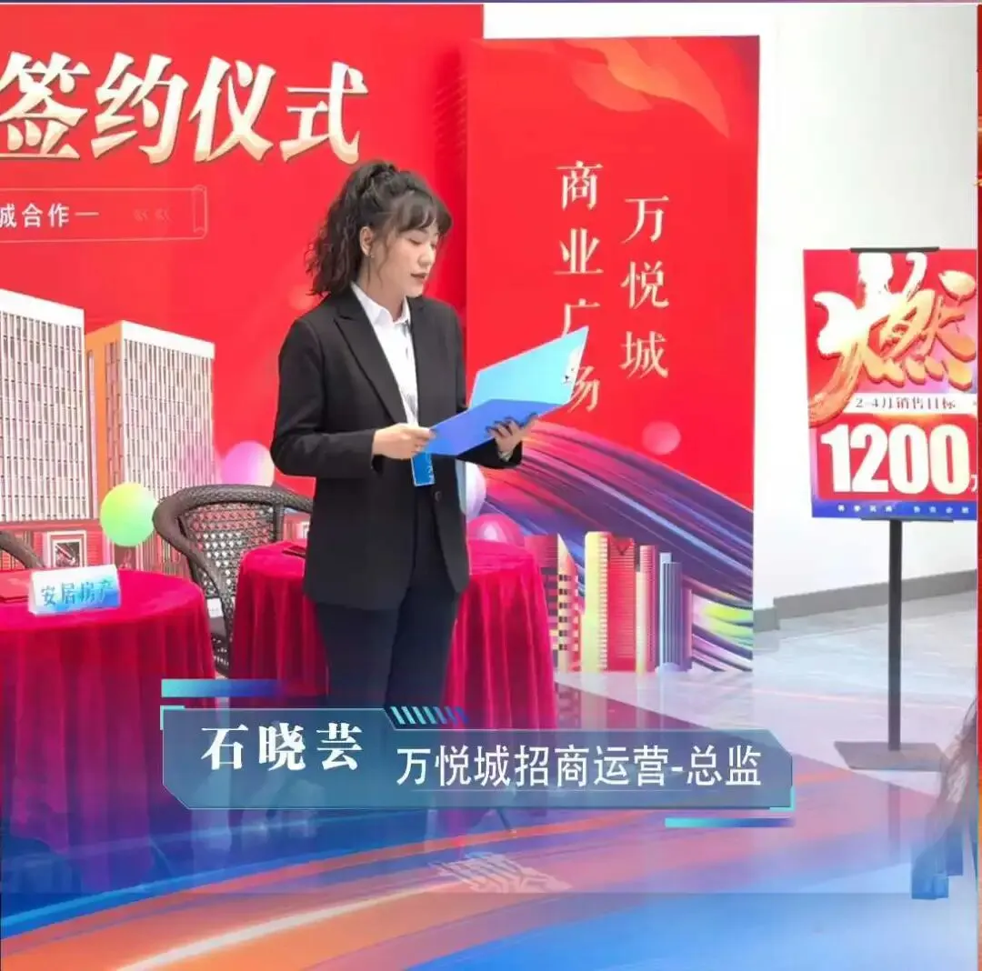 安居房产与名家地产万悦城商业项目销售代理签约暨进场启动仪式上,安居房产总经理发表致辞: