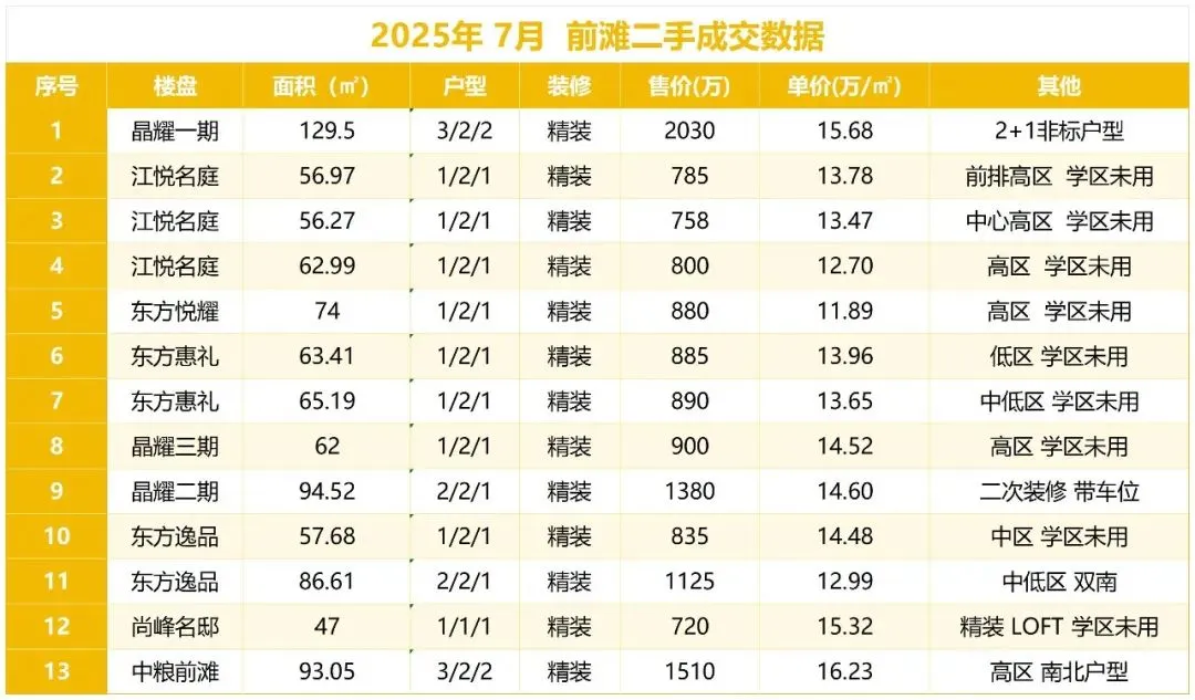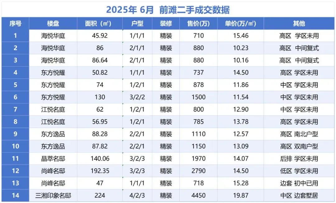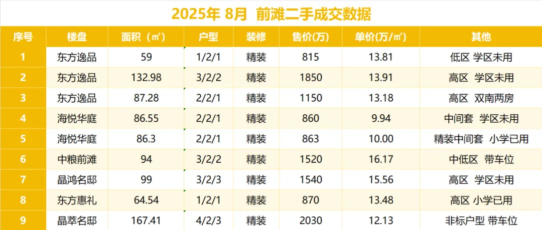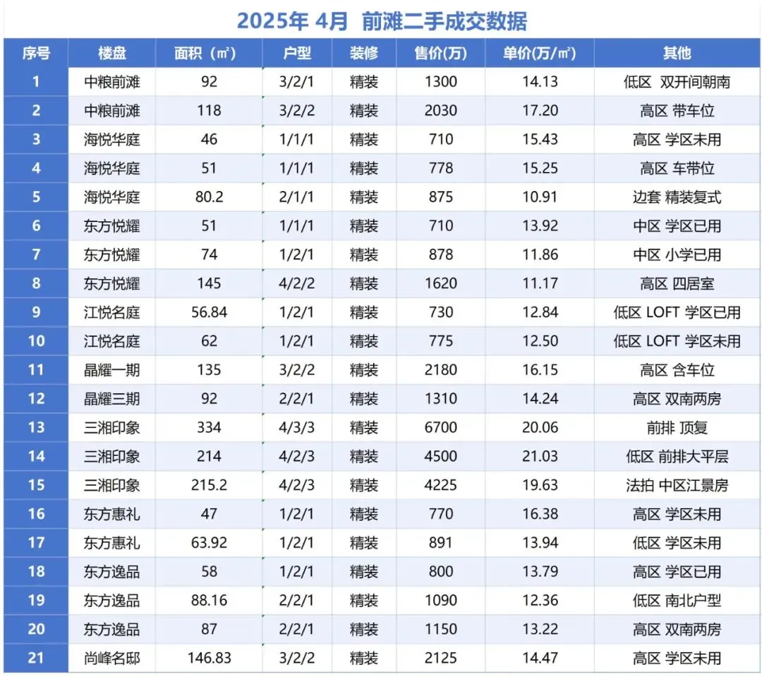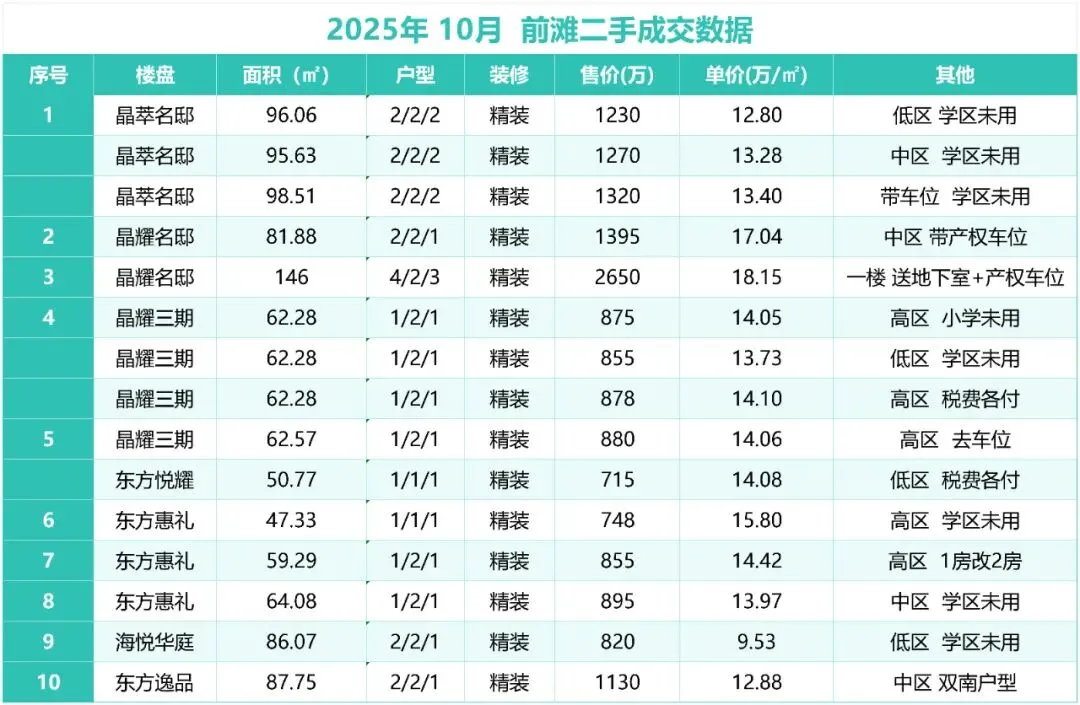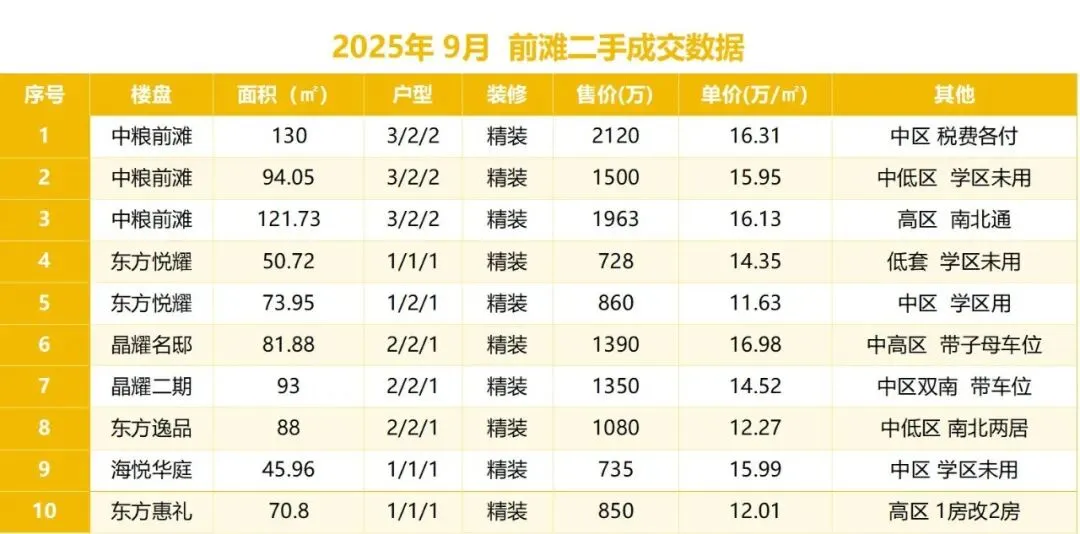 •挂牌量:前滩挂牌二手房约:274套左右,一房约:76套 两房约:75套 三四居室及以上约:123套。