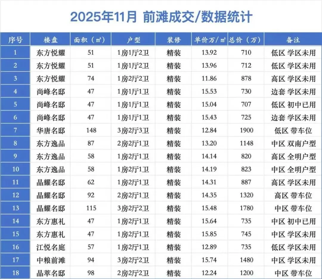 2025年1月上海前滩二手房呈现出以下走势