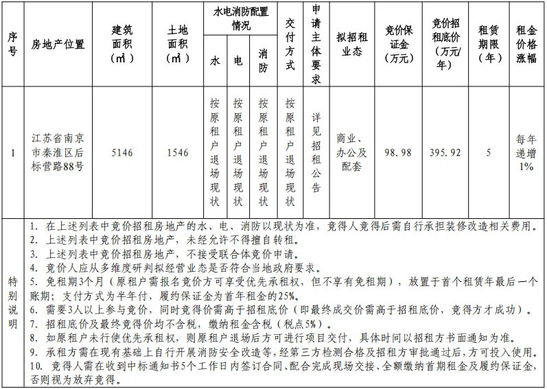 注:中国融通电子商务平台作为本项目的唯一交易平台,请承租人在中国融通电子商务平台上完成报名、保证金缴纳及竞价过程,竞租方资格要求详见竞价招租文件。