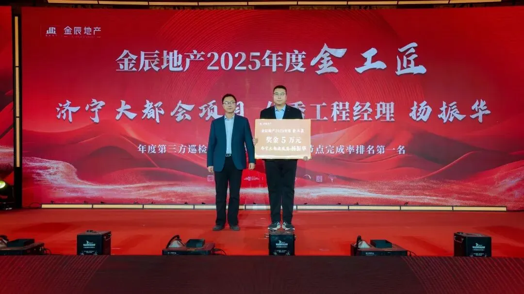 匠心铸金,标杆立世。工程是地产的根基,匠心是金辰的底色。在2025年的品质攻坚战中,工程团队以精益求精的执着,铸就行业标杆——地产第二区域济宁大都会项目摘得2025年度标杆工程项目银牌,地产第一区域德州江山赋项目荣膺金辰地产2025年度标杆工程项目金牌。